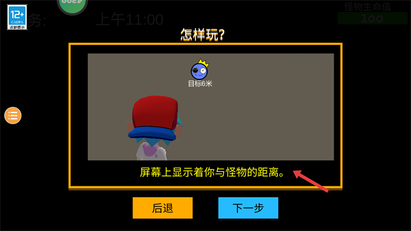4、關(guān)注屏幕上與怪物的距離提示利用距離信息躲避怪物,確保自身安全順利完成關(guān)卡。