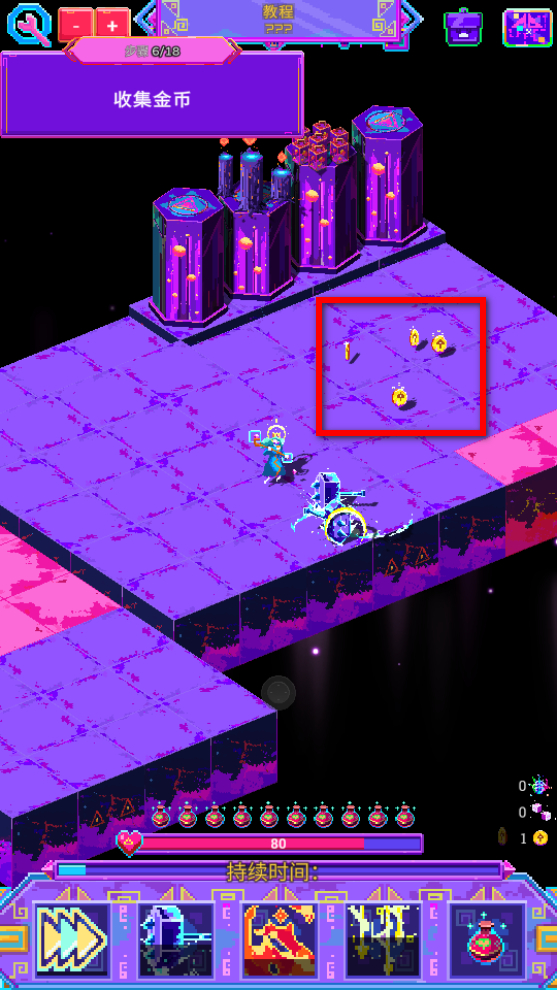 3、場(chǎng)景里會(huì)出現(xiàn)金幣,看到金幣就去收集,這些金幣可以買道具或強(qiáng)化能力,積累金幣能讓法師變得更強(qiáng),遇到金幣優(yōu)先去獲取。