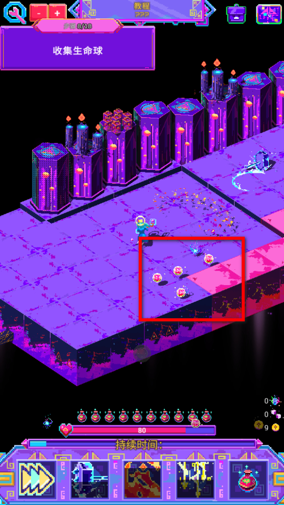 4、收集生命球恢復(fù)生命值,冒險(xiǎn)時(shí)生命值不足就靠生命球回血,遇到生命球一定要拿到,這樣才能保證法師在戰(zhàn)斗中一直存活。