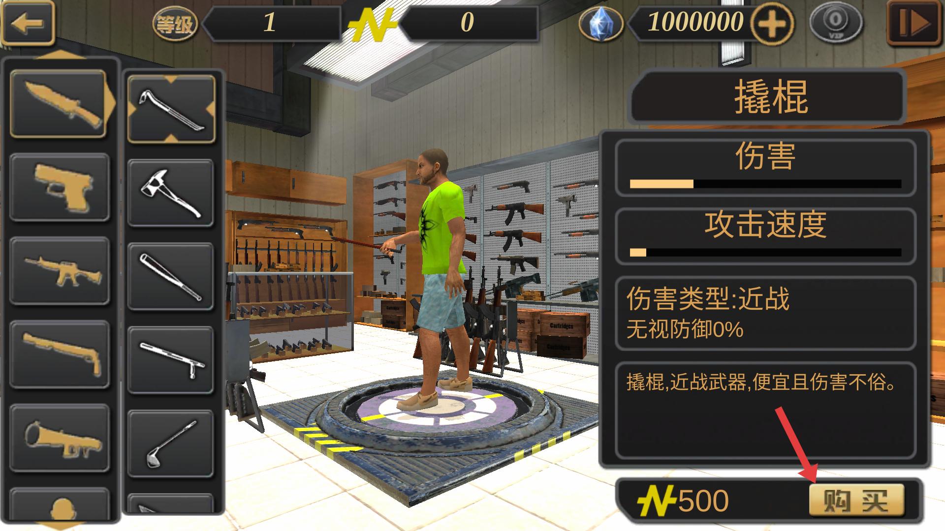 3、在商店若想提升近戰(zhàn)作戰(zhàn)能力,可花費(fèi)500游戲貨幣購(gòu)買(mǎi)撬棍,它是便宜且傷害不俗的近戰(zhàn)武器,能助力你在近戰(zhàn)戰(zhàn)斗中取得優(yōu)勢(shì)。