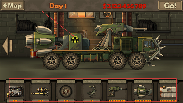 2、利用游戲內(nèi)資源升級車輛的發(fā)動機、輪胎、武器等部件,強化車輛的越野性能、速度和攻擊能力,打造適合碾壓僵尸和復雜地形的戰(zhàn)車。
