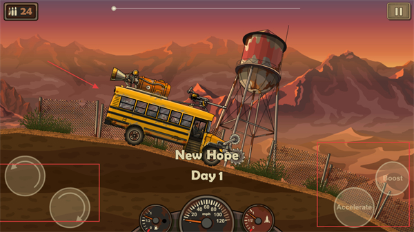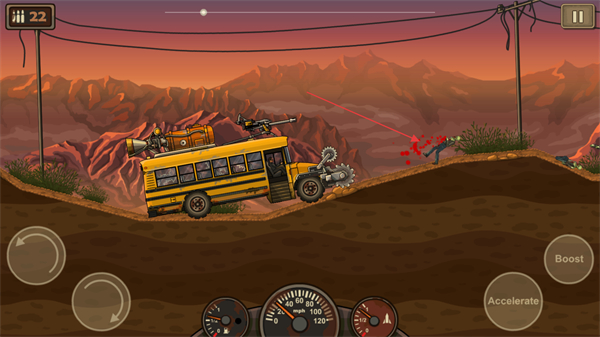 4、挑戰(zhàn)不同的關卡,規(guī)劃行駛路線,避開危險地形如深溝、陡坡,同時盡可能多地消滅僵尸以獲取資源,推進關卡進度。