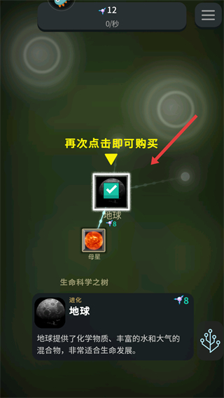 4、再次點擊購買地球利用地球提供的化學物質、水和大氣混合物促進生命發(fā)展推動星球進化的過程。