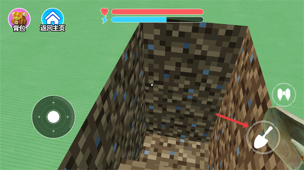 3、點(diǎn)擊右側(cè)鏟子圖標(biāo)挖掘土地不斷向下挖掘,尋找地下的寶藏資源積累財(cái)富。