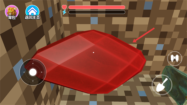 4、挖到紅色寶石后繼續(xù)挖掘或收集寶石提升財(cái)富積累,同時(shí)注意生命和體力狀態(tài)確保挖寶過程的安全。