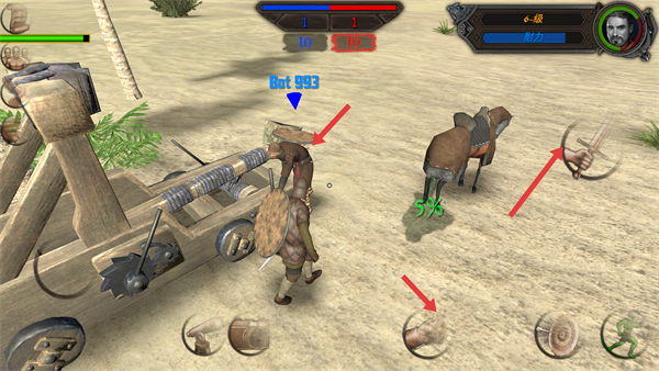 4、在沙漠戰(zhàn)斗可操作投石車攻擊敵人,也可切換到近戰(zhàn)武器,靠近敵人后使用武器攻擊,同時注意利用周圍環(huán)境和道具提升戰(zhàn)斗效率。