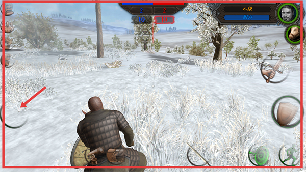 1、雪地戰(zhàn)斗場景中左側(cè)圓形按鈕可控制角色移動,右側(cè)有武器、盾牌等功能按鈕,通過這些操作可在雪地中靈活移動并參與戰(zhàn)斗。