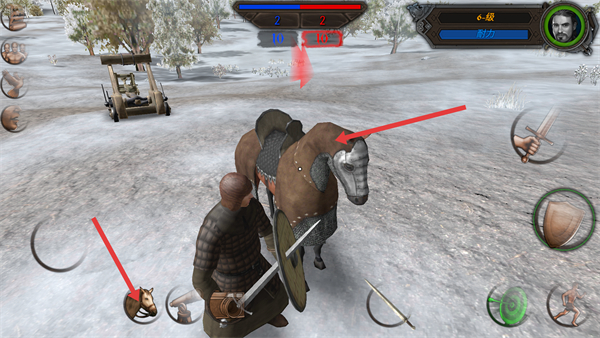 2、戰(zhàn)斗中看到馬匹時,點擊左側(cè)馬匹圖標(biāo)可騎馬,騎馬后能提升移動速度,同時可使用武器攻擊敵人,合理利用馬匹能增強(qiáng)戰(zhàn)斗優(yōu)勢。