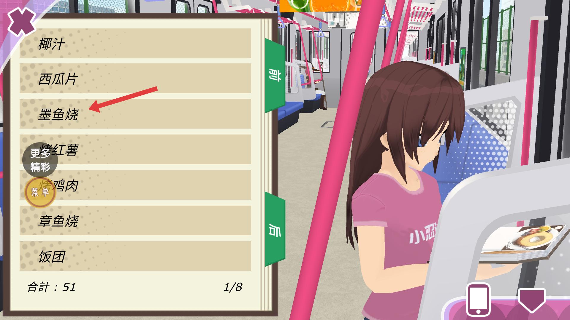 3、打開食譜后,可看到多種美食選項,如墨魚燒等,選擇你想要制作的美食,查看其具體制作要求。