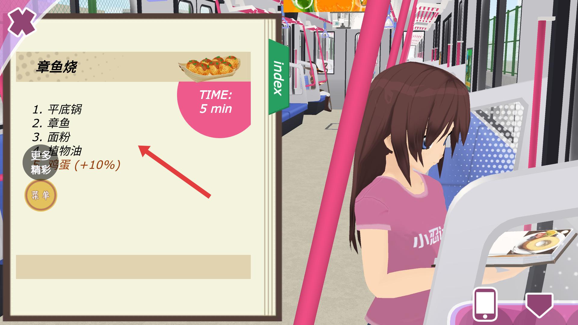 2、在工具欄中找到帶有烹飪圖案的書本道具,點擊它可打開食譜界面,為后續(xù)制作美食做準備。