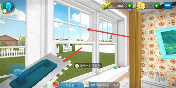 4、清潔完成后,若有更換窗戶的任務,使用工具更換窗戶,完成家居修繕,逐步完成所有家居任務,提升房屋狀態(tài)。