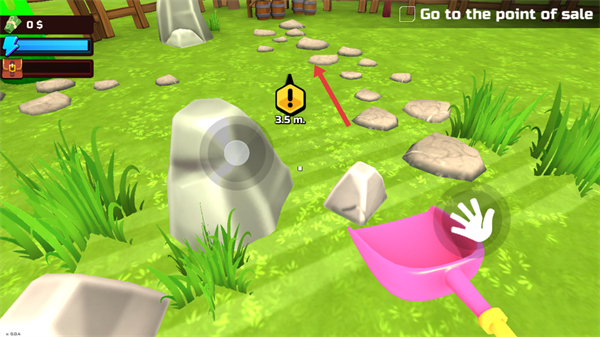 3、跟隨指引前往銷售點(diǎn)沿著石路移動,關(guān)注距離提示完成任務(wù)目標(biāo)推進(jìn)游戲進(jìn)程。