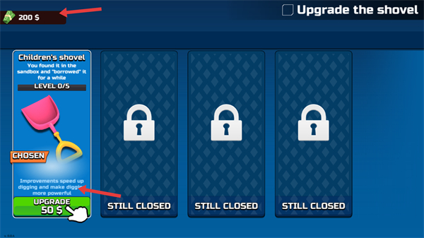 4、利用獲得的金錢升級鏟子提升挖掘速度和能力,助力后續(xù)更高效地挖寶和完成任務(wù)。