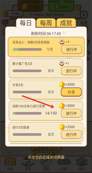 3、多線并行的成長系統(tǒng),同時提升公寓規(guī)模、倉鼠數(shù)量和探索等級,不同玩法的進度會相互加成。