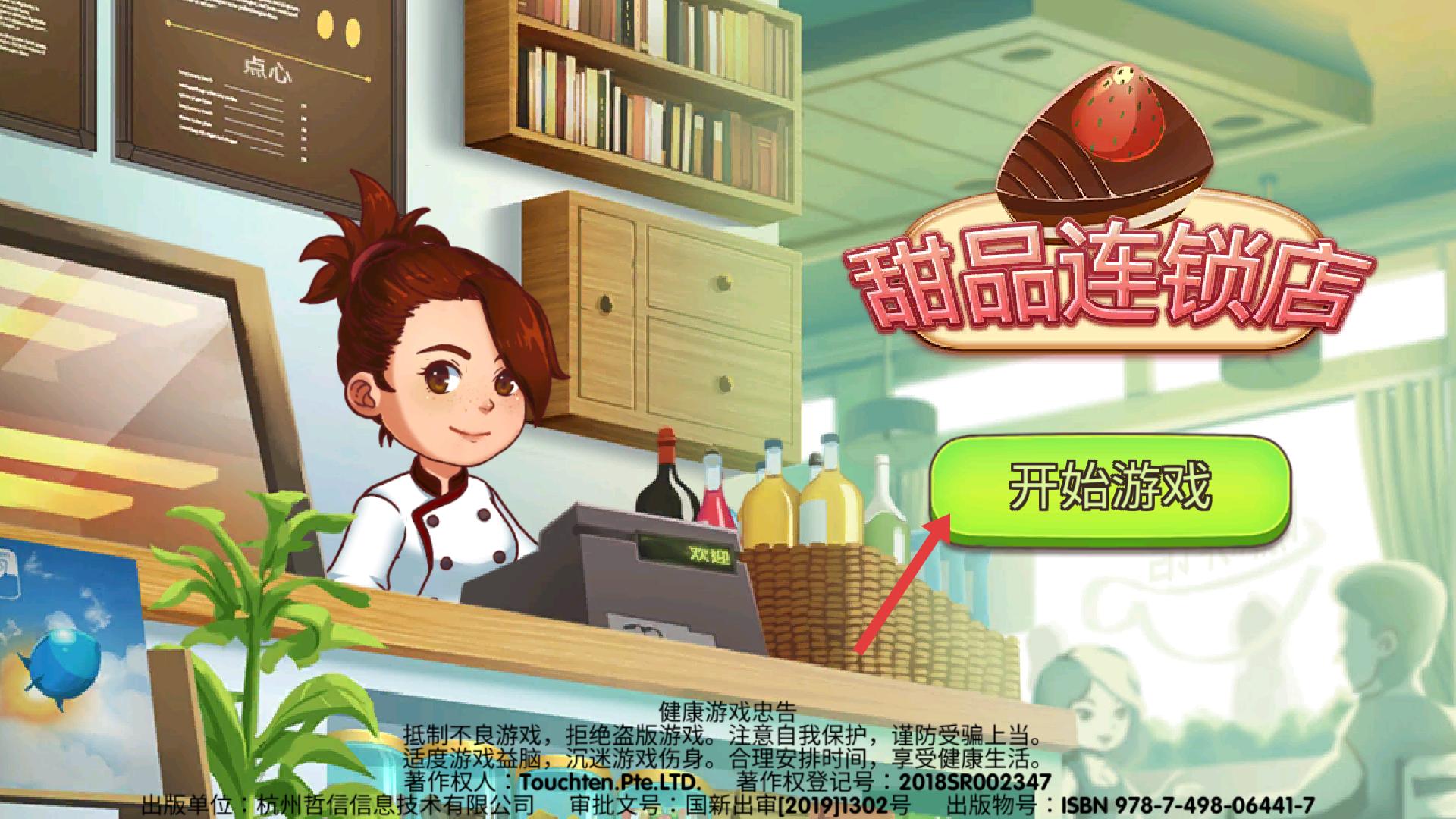 1、在游戲初始界面,點(diǎn)擊開始游戲按鈕,即可開啟你的甜品連鎖店經(jīng)營之旅,開始管理店鋪。