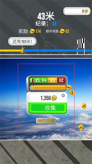 4、挑戰(zhàn)角色彈射的最遠距離,不斷突破自己的紀錄完成關卡之后然后點擊進入下一關。