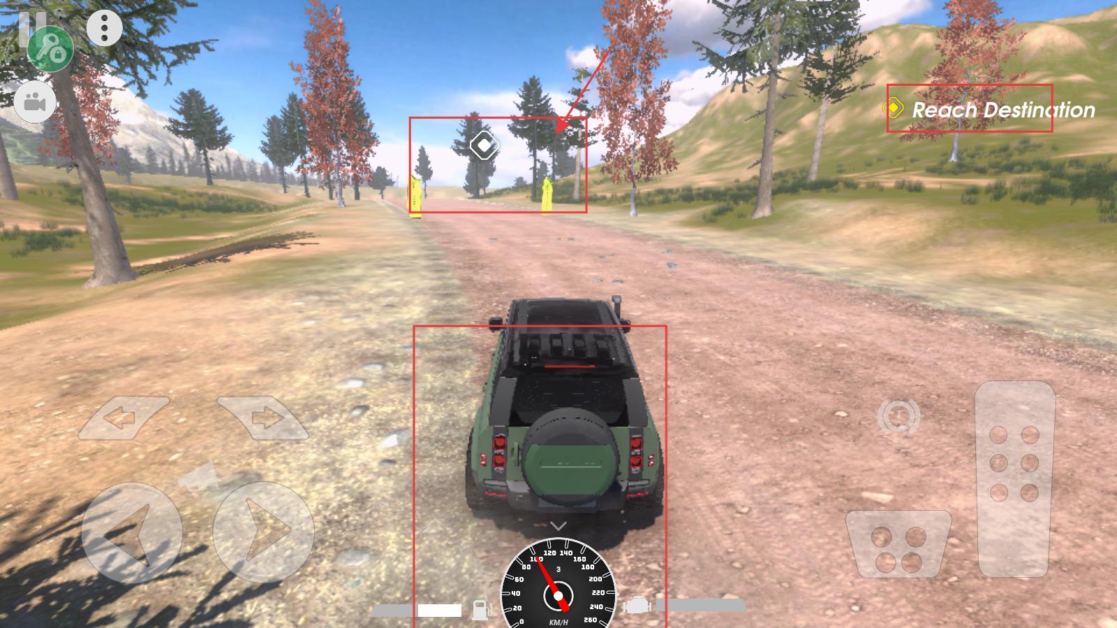 2、要利用左側(cè)方向鍵和右側(cè)加速、剎車等按鍵,操控車輛在砂石路上行駛,注意車速和方向,確保行駛穩(wěn)定。