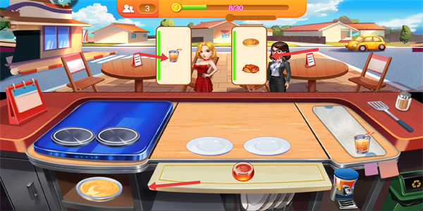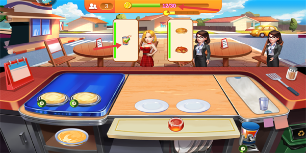 1、選擇關(guān)卡進(jìn)入游戲,開啟餐廳經(jīng)營(yíng)挑戰(zhàn),此時(shí)需關(guān)注關(guān)卡目標(biāo),為后續(xù)餐品制作與服務(wù)做好準(zhǔn)備。