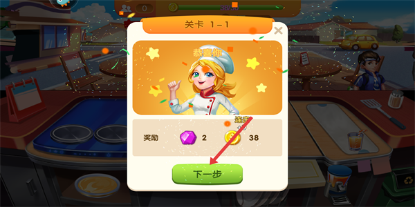 4、完成關(guān)卡后領(lǐng)取獎(jiǎng)勵(lì),利用獎(jiǎng)勵(lì)升級(jí)餐廳設(shè)施或解鎖新菜譜,隨后進(jìn)入下一步,繼續(xù)挑戰(zhàn)新關(guān)卡,推動(dòng)餐廳發(fā)展。