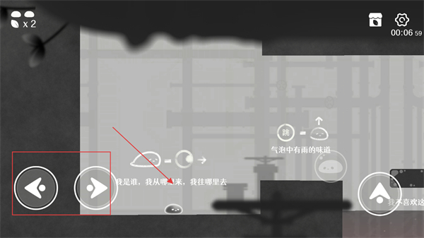 1、通過(guò)左右方向鍵操控角色在黑白灰風(fēng)格的場(chǎng)景中移動(dòng),探索不同區(qū)域,發(fā)現(xiàn)隱藏的互動(dòng)元素和劇情線索,推進(jìn)游戲進(jìn)程。