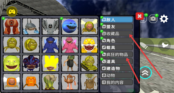 3、打開內(nèi)容菜單可從敵人盟友等分類里選,比如想召喚敵人就點敵人分類選怪物,放置到場景中增加挑戰(zhàn)或助力戰(zhàn)斗。