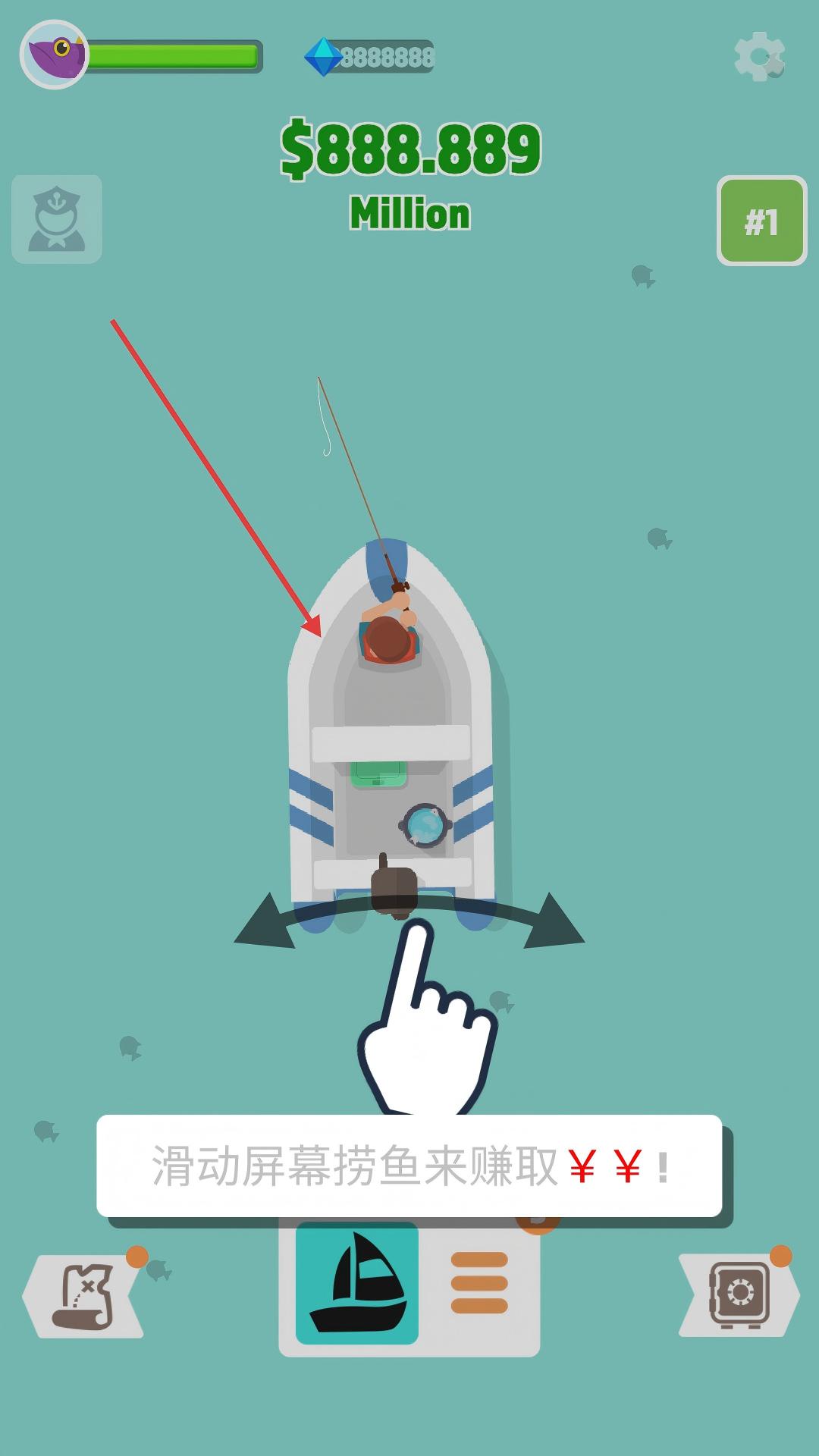 1、滑動屏幕撈魚來賺取錢財,這是獲取資源的基礎(chǔ)操作,通過撈魚積累資金,可用于升級船只、船員等,助力游戲發(fā)展,需熟練掌握滑動撈魚操作。