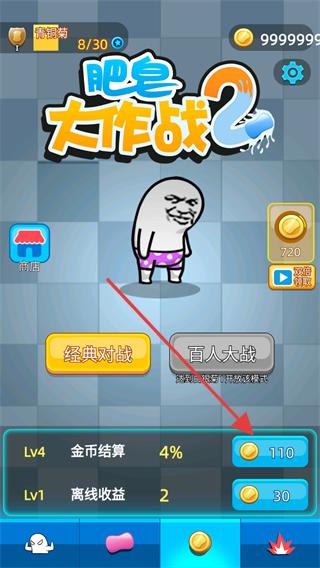 1、打開游戲進入主界面可領(lǐng)取金幣結(jié)算和離線收益等獎勵,點擊領(lǐng)取后,選擇經(jīng)典對戰(zhàn)或百人大戰(zhàn)模式,進入游戲?qū)?zhàn)場景。