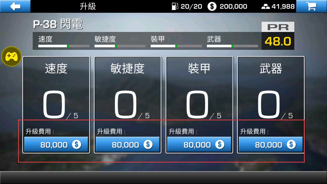 4、消耗戰(zhàn)斗中獲得的銀幣升級(jí)飛機(jī)各項(xiàng)性能,提升最高時(shí)速、裝甲強(qiáng)度等關(guān)鍵參數(shù)應(yīng)對(duì)后期更高難度關(guān)卡。
