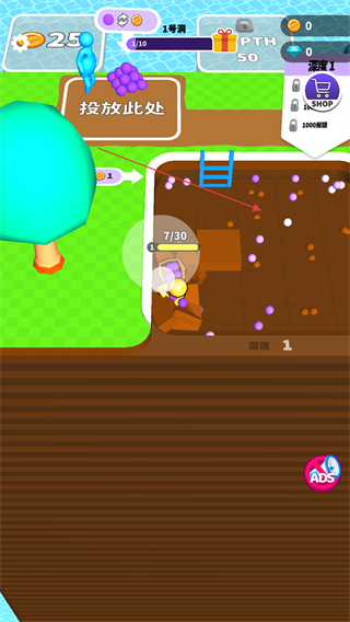 4、挖掘過(guò)程中收集紫色礦石等資源,資源可兌換金幣等收益,利用免廣告優(yōu)勢(shì),無(wú)需觀看廣告即可快速積累資源和收益。