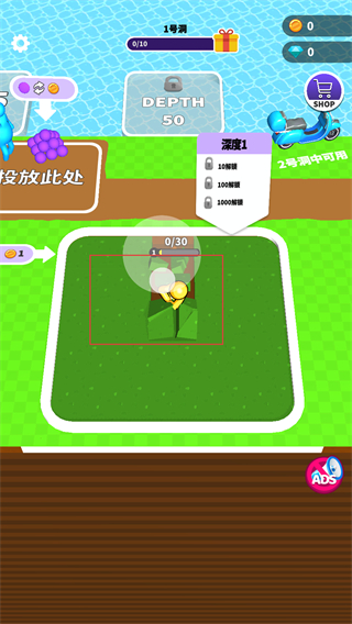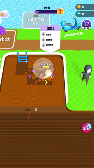 2、操控角色在洞穴中向下挖掘,挑戰(zhàn)不同深度,每挖深一層可解鎖新的挖掘區(qū)域和資源,推進(jìn)洞穴挖掘進(jìn)度。