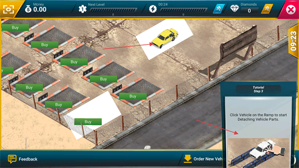 4、在規(guī)定時間內(nèi)完成車輛的回收、停放和拆解任務(wù),處理車輛訂單獲取收益,同時規(guī)劃垃圾場的運營流程確保經(jīng)營的高效性。