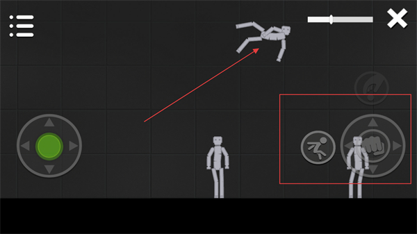 3、利用右側(cè)的動(dòng)作按鈕操控角色,對(duì)其他角色或場(chǎng)景元素實(shí)施破壞,通過(guò)拳擊、撞擊等動(dòng)作造成物理反饋,體驗(yàn)破壞的樂(lè)趣。