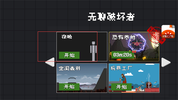 1、選擇不同場(chǎng)景如夜晚、空間森林、異界工廠等開(kāi)始游戲,每個(gè)場(chǎng)景有獨(dú)特的破壞玩法和元素,體驗(yàn)多樣的破壞挑戰(zhàn)。