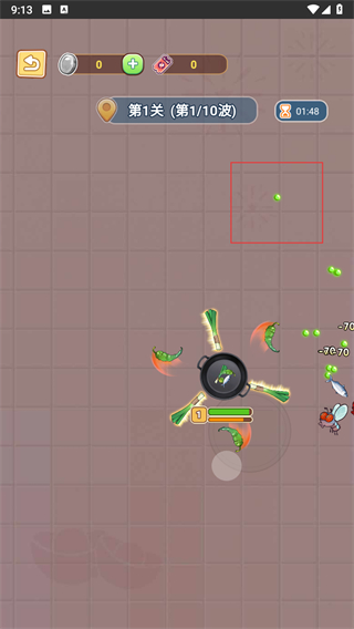 2、面對來襲的敵人如蒼蠅,合理布局生成的食材武器,利用其攻擊范圍和傷害特性,全方位抵御敵人,確保鍋的安全。