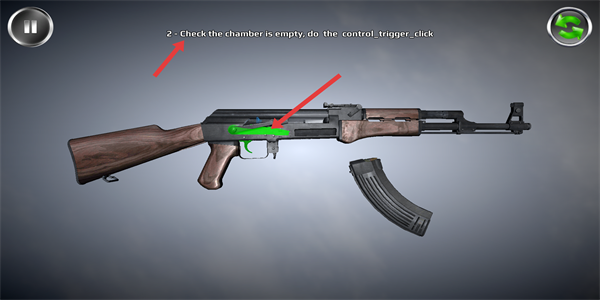 2、在操作界面,先檢查槍械彈膛是否為空,按照提示進(jìn)行扳機(jī)操作,確保槍械處于安全可操作狀態(tài)。