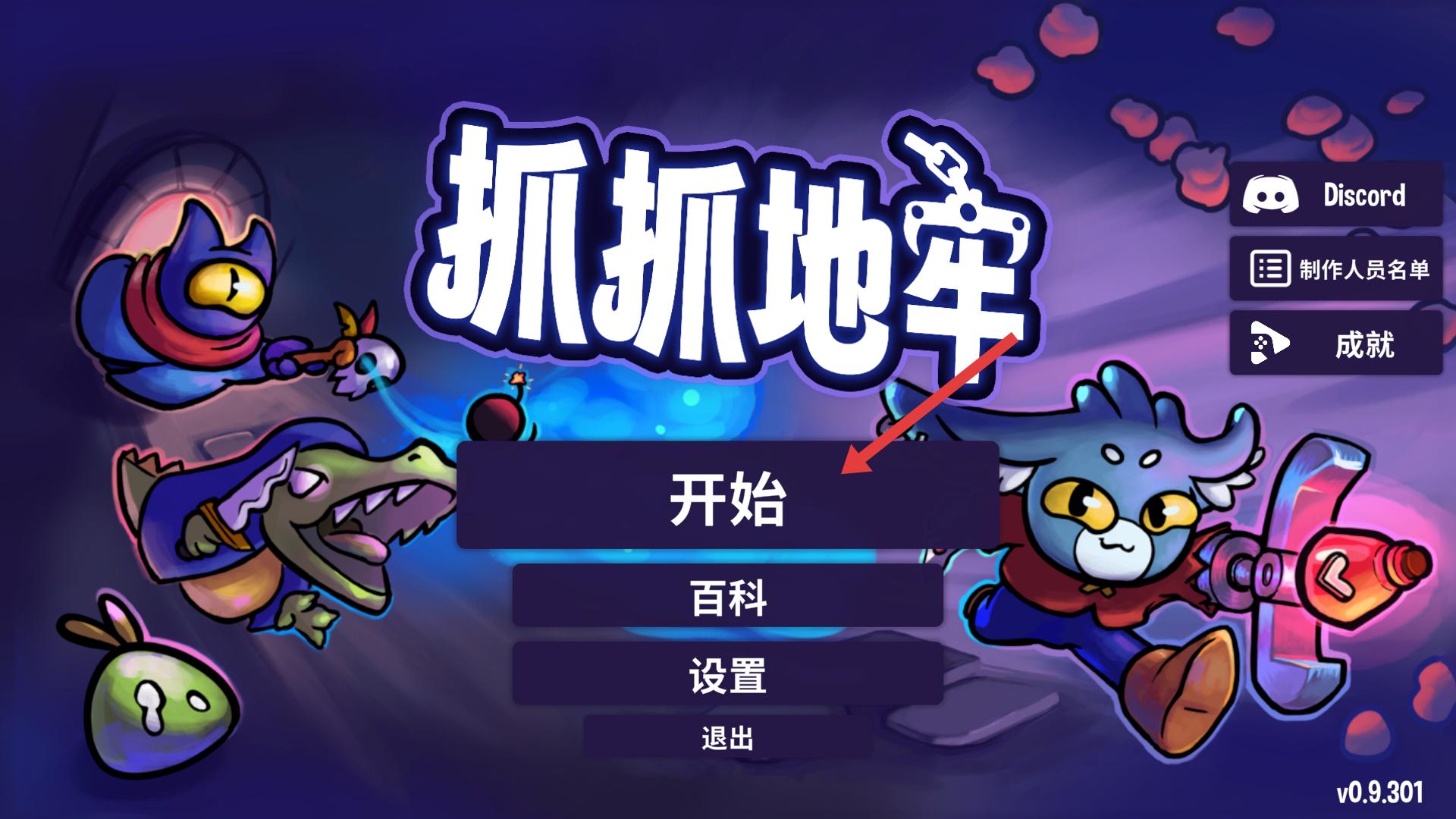 1、游戲主界面,點(diǎn)擊【開(kāi)始】按鈕即可進(jìn)入抓抓地牢游戲,挑戰(zhàn)各層關(guān)卡。