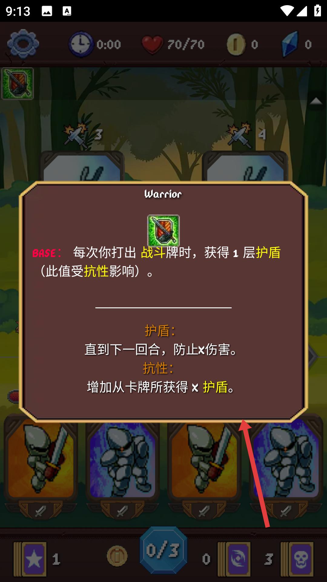 4、觸發(fā)職業(yè)技能時,查看技能說明,利用打出戰(zhàn)斗牌獲得護盾等效果,提升自身生存和戰(zhàn)斗能力,推進(jìn)戰(zhàn)斗進(jìn)程。