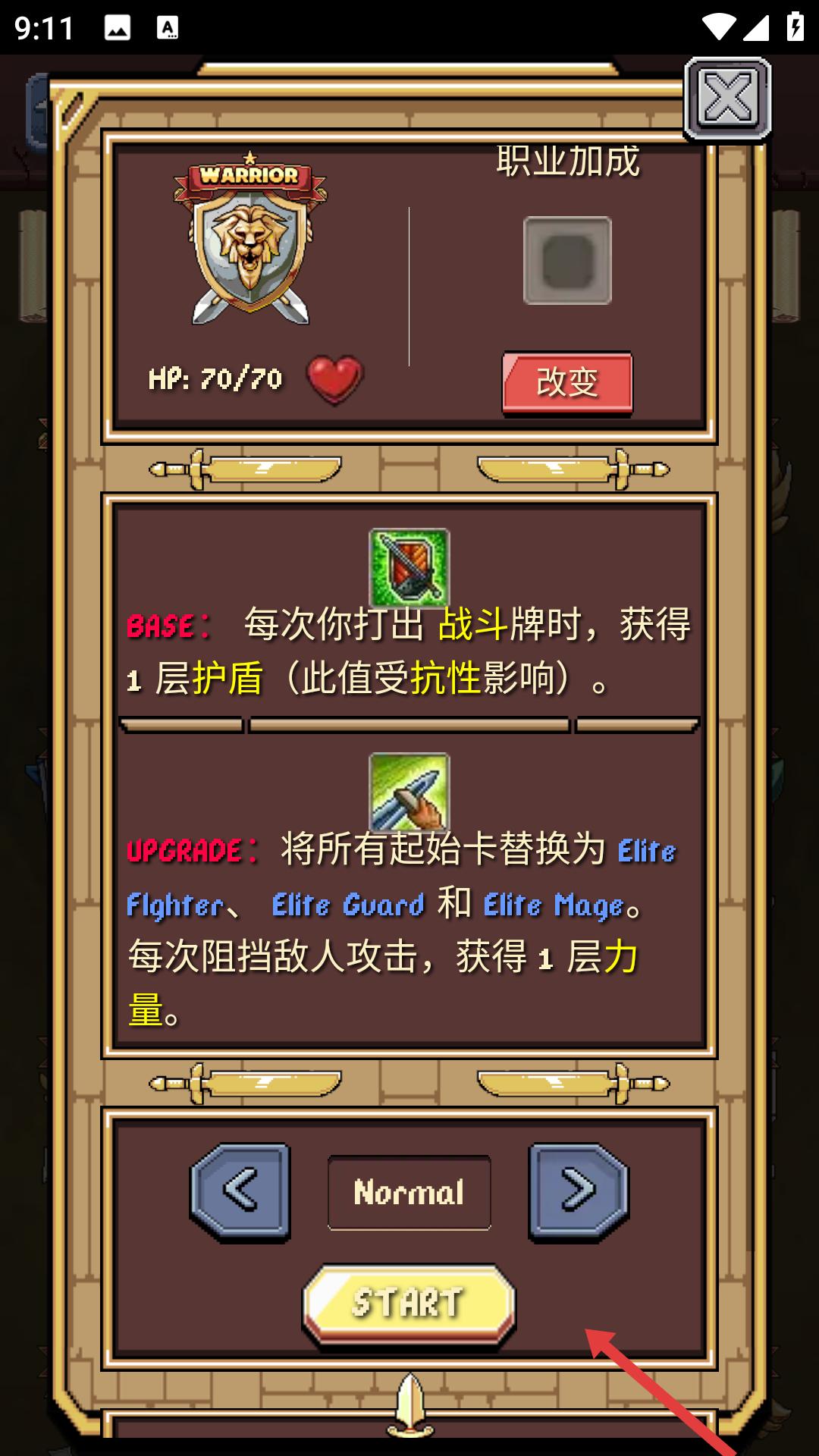 1、選擇職業(yè)并查看其加成效果,了解初始屬性和技能特點,確認(rèn)后點擊開始按鈕,進(jìn)入游戲流程。