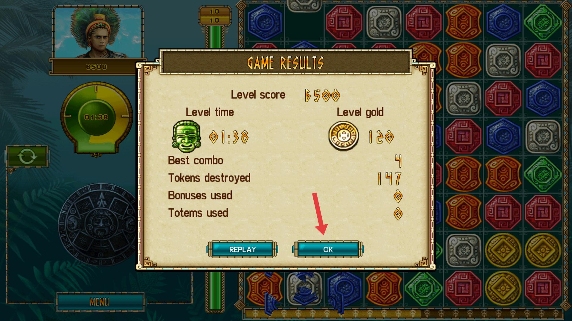 4、關卡結束后,點擊【OK】按鈕可確認結算,繼續(xù)下一關冒險,也可選擇重玩關卡提升成績。