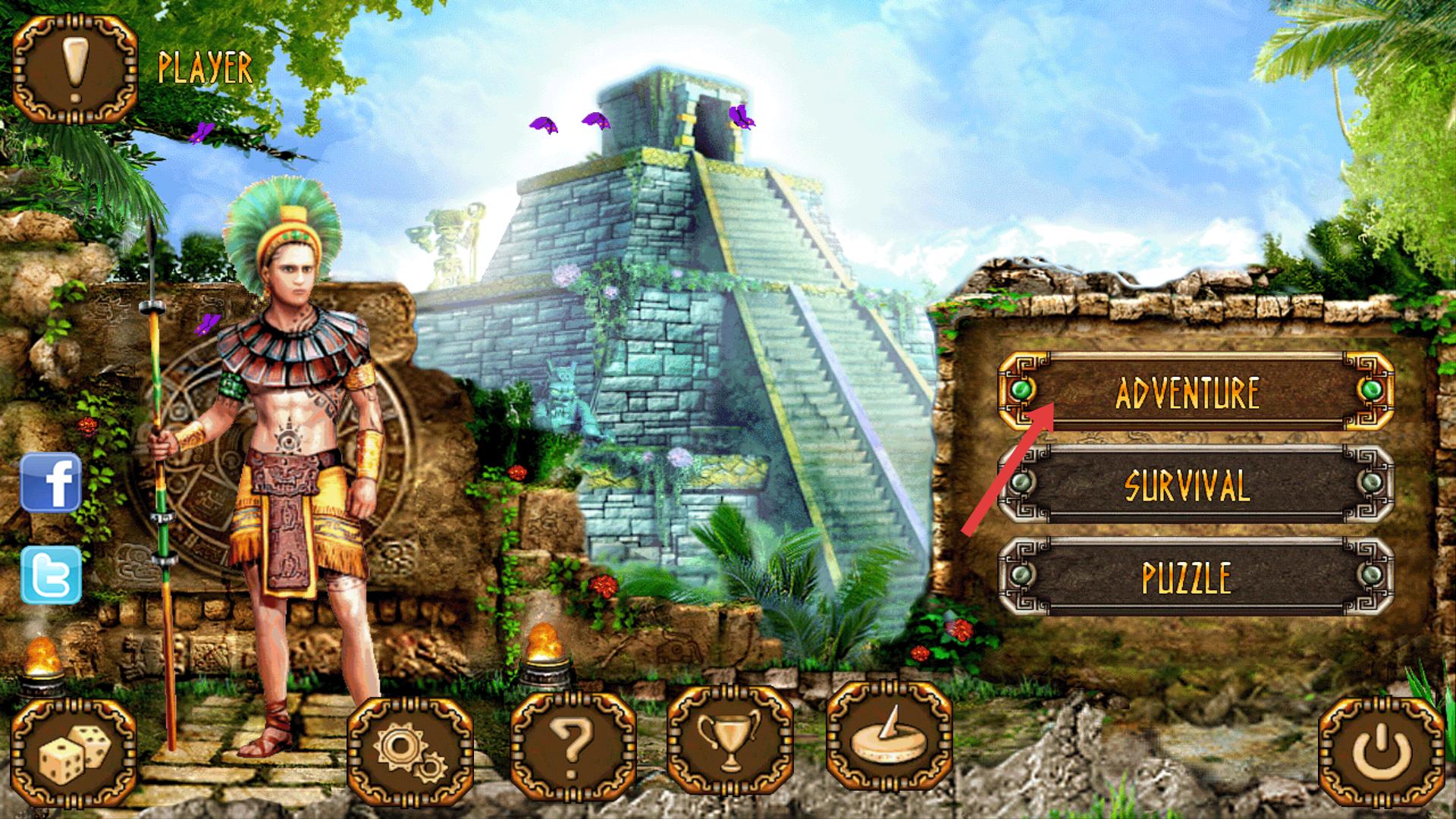 1、點擊【ADVENTURE】按鈕即可進入冒險模式,點擊冒險后開啟古文明探險,挑戰(zhàn)寶石消除關卡。