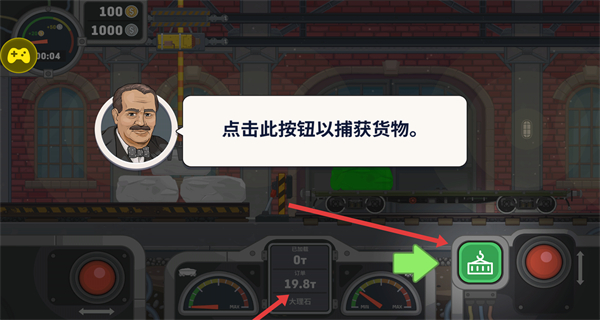 2、玩家按提示點(diǎn)擊綠色捕獲按鈕,抓取貨物將其移至車廂,完成貨物裝載步驟推進(jìn)運(yùn)輸任務(wù)。