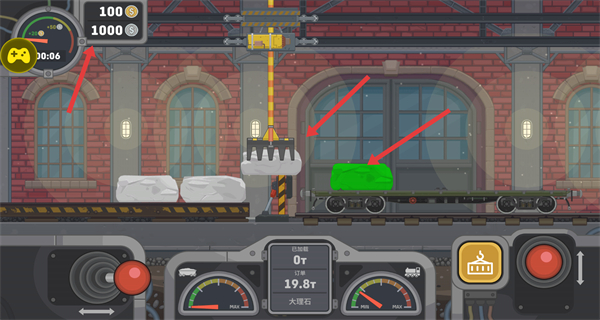 3、玩家需要留意金幣時(shí)間等資源,完成貨物裝載后檢查車廂機(jī)械臂狀態(tài),為發(fā)車做準(zhǔn)備繼續(xù)運(yùn)輸流程。