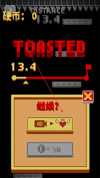 4、當角色失敗后提供觀看廣告或消耗金幣的續(xù)關方式,讓玩家有機會繼續(xù)之前的冒險進度,增加游戲的可玩性和持續(xù)性。