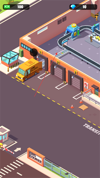 1、快遞車在城市道路中行駛,將快遞從運(yùn)輸區(qū)域送往快遞倉庫,完成運(yùn)輸任務(wù)以獲取金幣獎勵,不斷拓展快遞配送的路線和區(qū)域。
