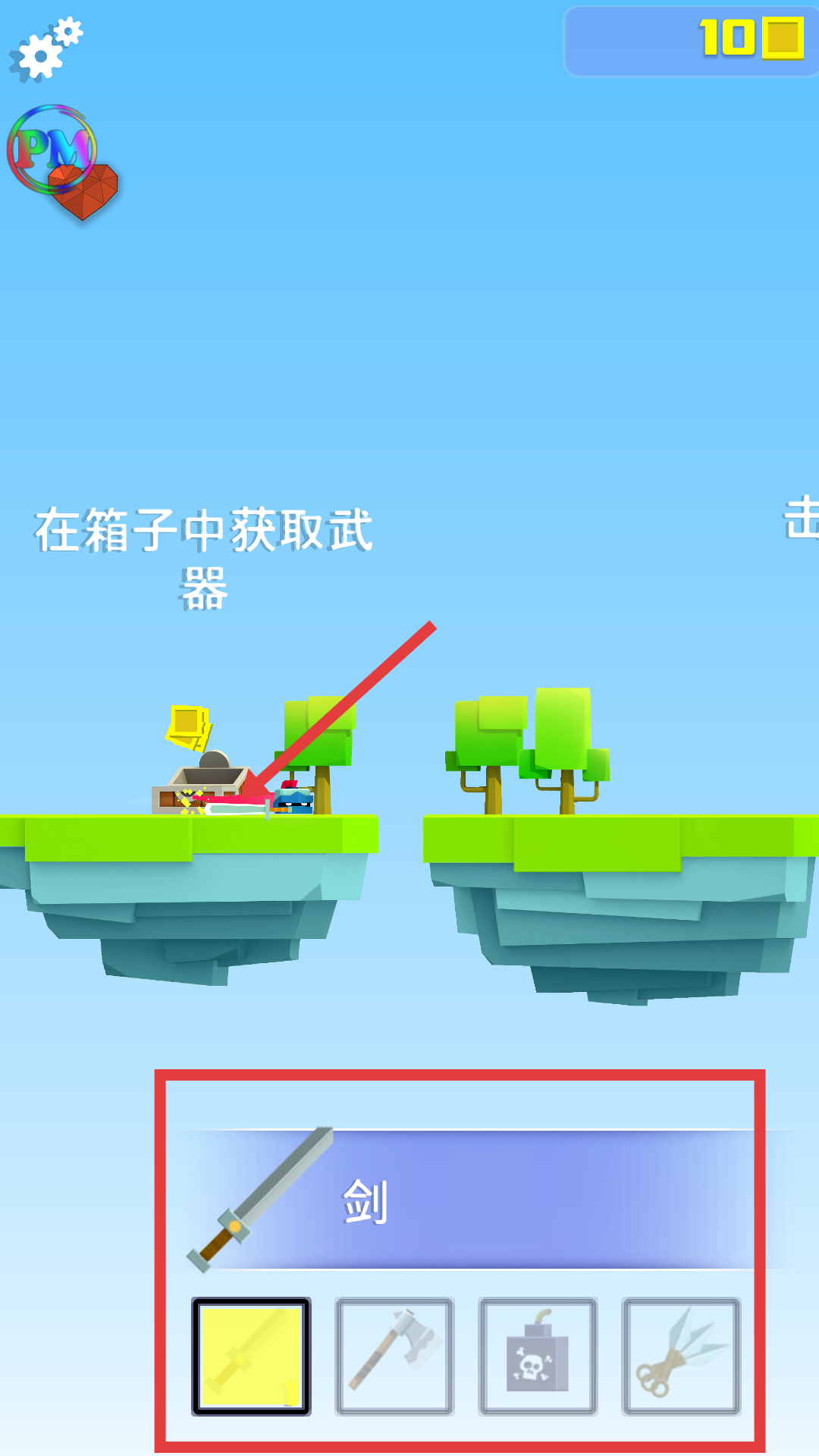 3、玩家在前進(jìn)時(shí)會遇到不同寶箱,可在箱子中獲取武器如劍等,獲取武器后能提升戰(zhàn)斗能力,要留意箱子的位置,及時(shí)打開獲取武器來武裝自己。