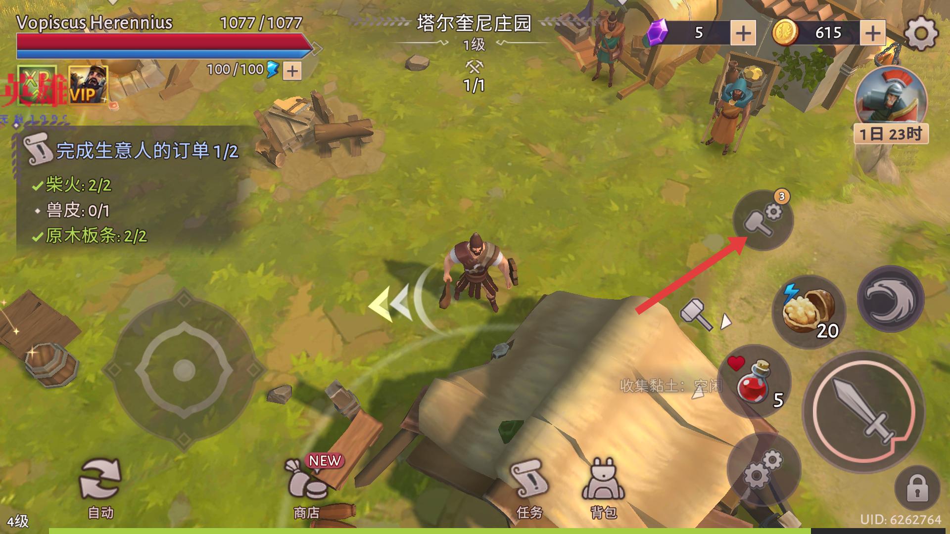 1、在塔爾奎尼莊園,關(guān)注右側(cè)帶工具圖標(biāo)的按鈕,及時(shí)點(diǎn)擊進(jìn)入建筑界面,提升莊園發(fā)展進(jìn)度。