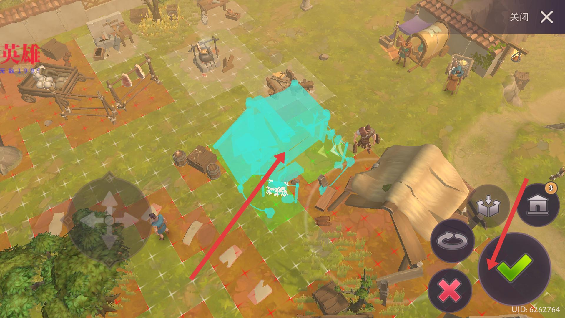 4、在建筑搭建位置確認(rèn)界面,將建筑放置在合適的網(wǎng)格區(qū)域,點(diǎn)擊右側(cè)綠色對(duì)勾按鈕,完成建筑搭建操作,拓展莊園建筑布局,提升莊園整體功能。