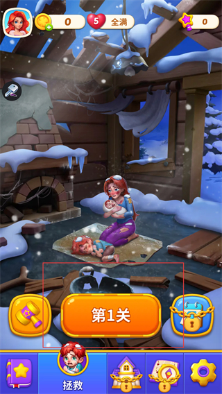 3、在冰雪小屋等場(chǎng)景,通過(guò)消除闖關(guān)解救被困角色,隨著關(guān)卡完成解鎖新的角色和場(chǎng)景,體驗(yàn)充滿(mǎn)溫情的救援故事。