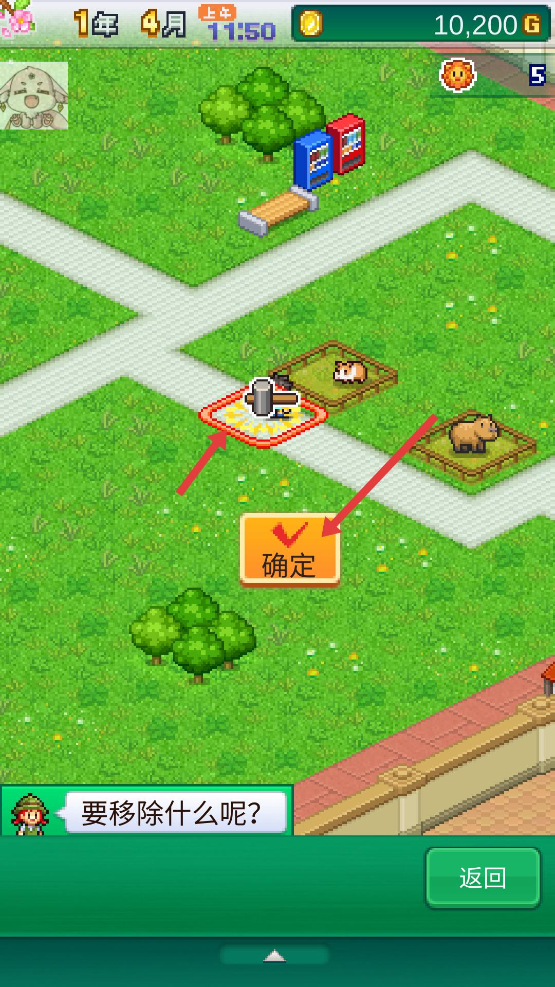 4、選擇撤除設(shè)施后,在動物園場景中確定撤除位置,點擊確定按鈕完成撤除操作,以便重新規(guī)劃設(shè)施布局,提升動物園經(jīng)營效率。