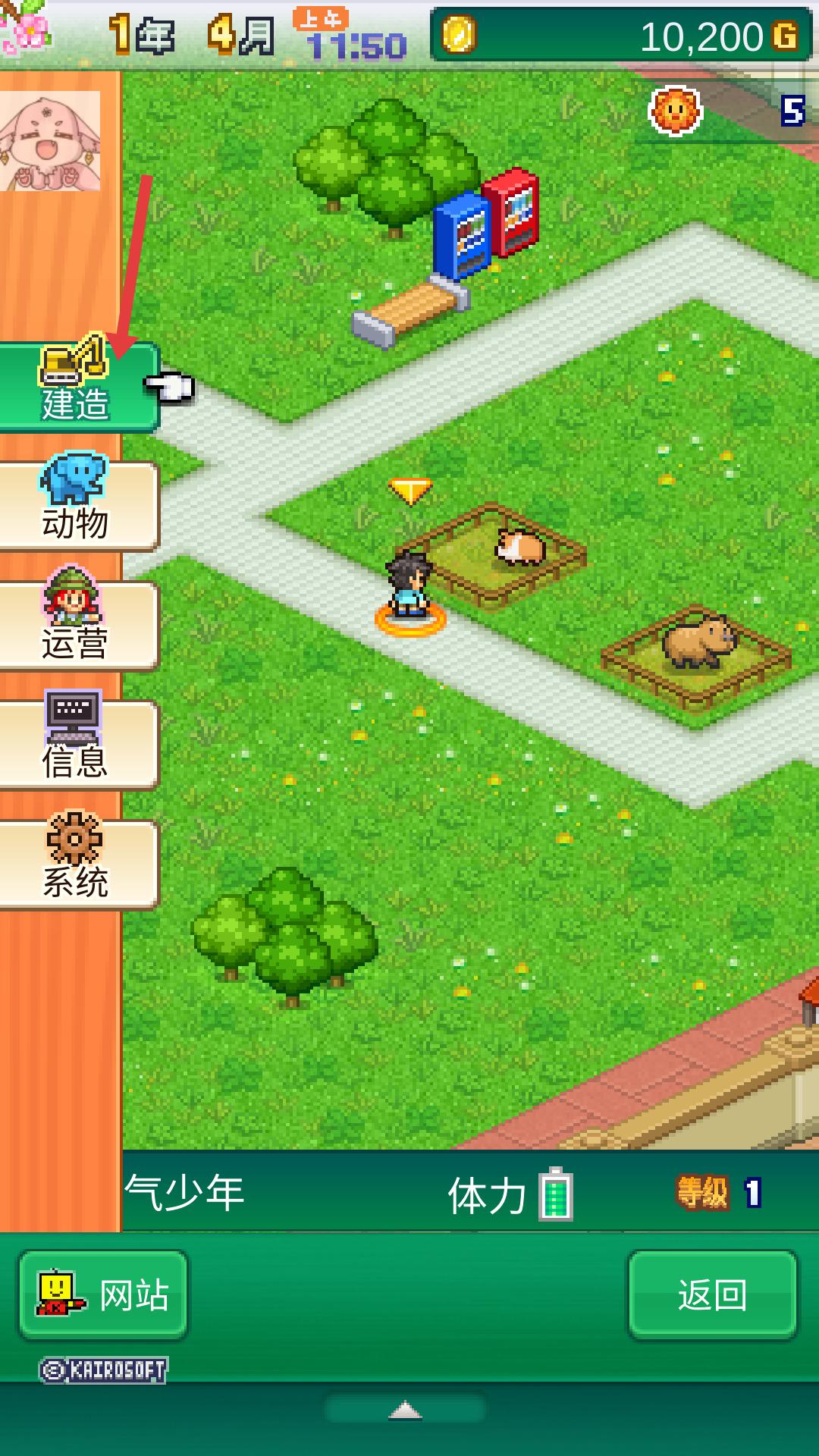 2、在游戲界面點擊建造按鈕,進入建造菜單,可選擇設(shè)備、動物、環(huán)境類設(shè)施進行建設(shè),為動物園布局和發(fā)展奠定基礎(chǔ)。